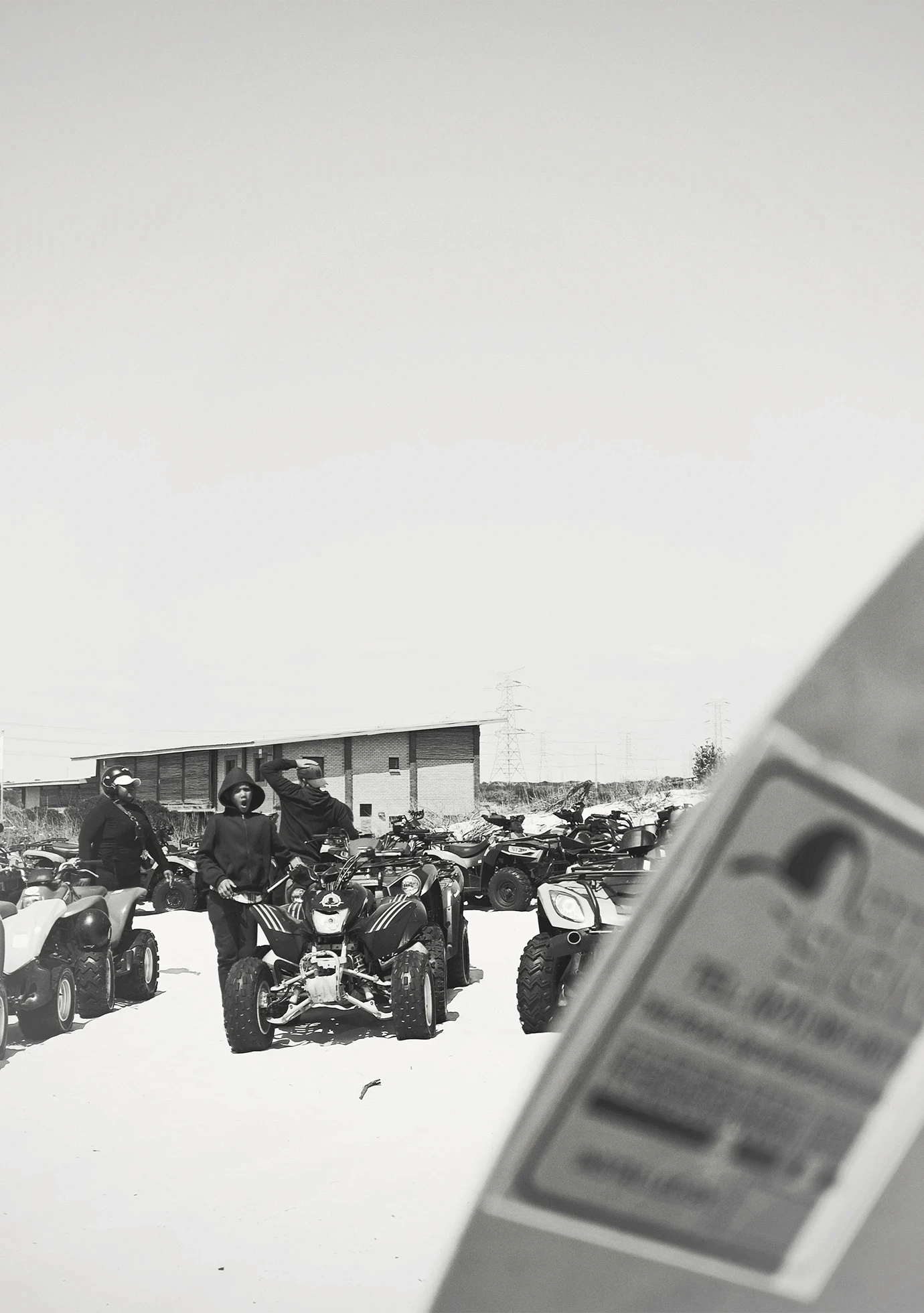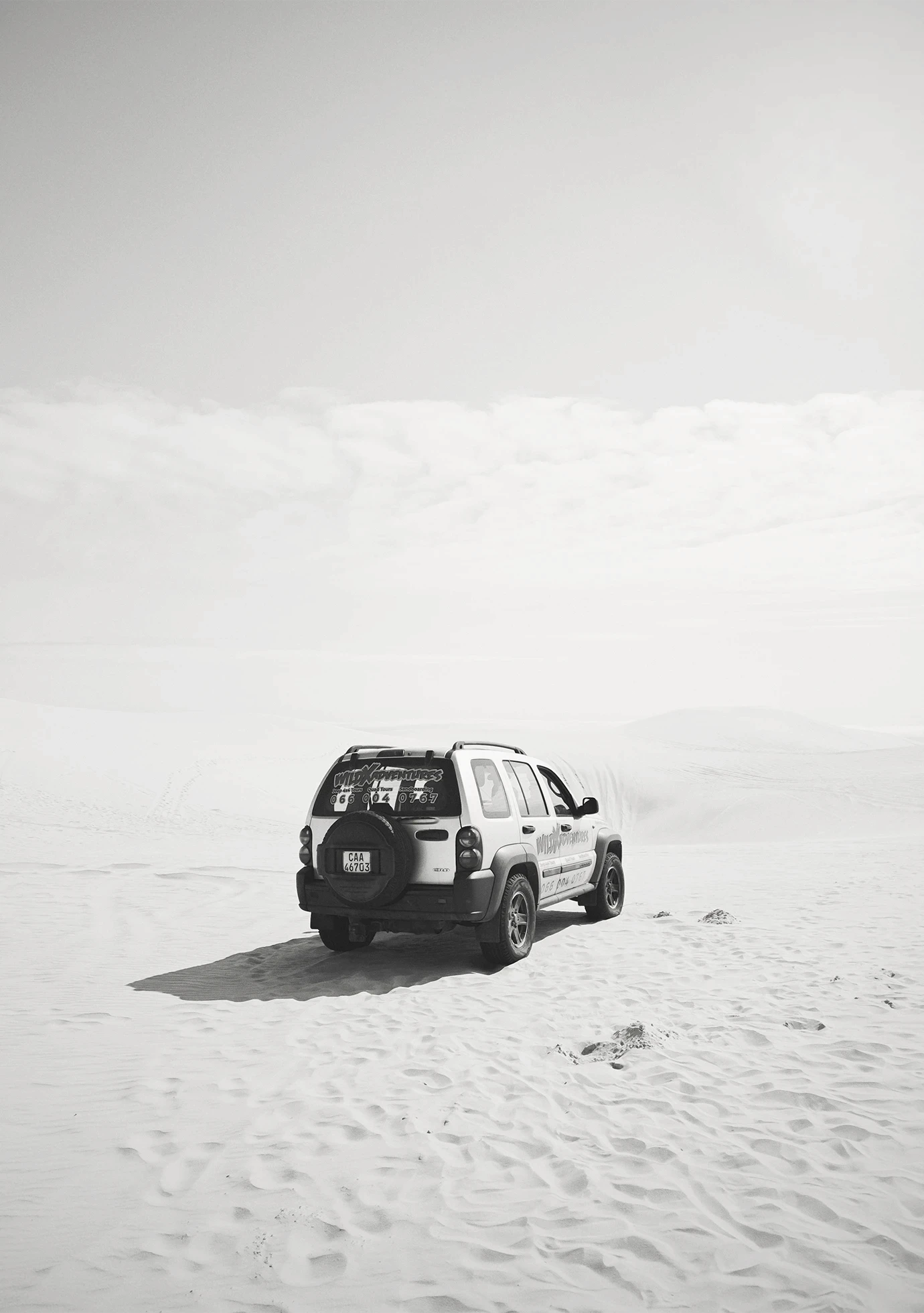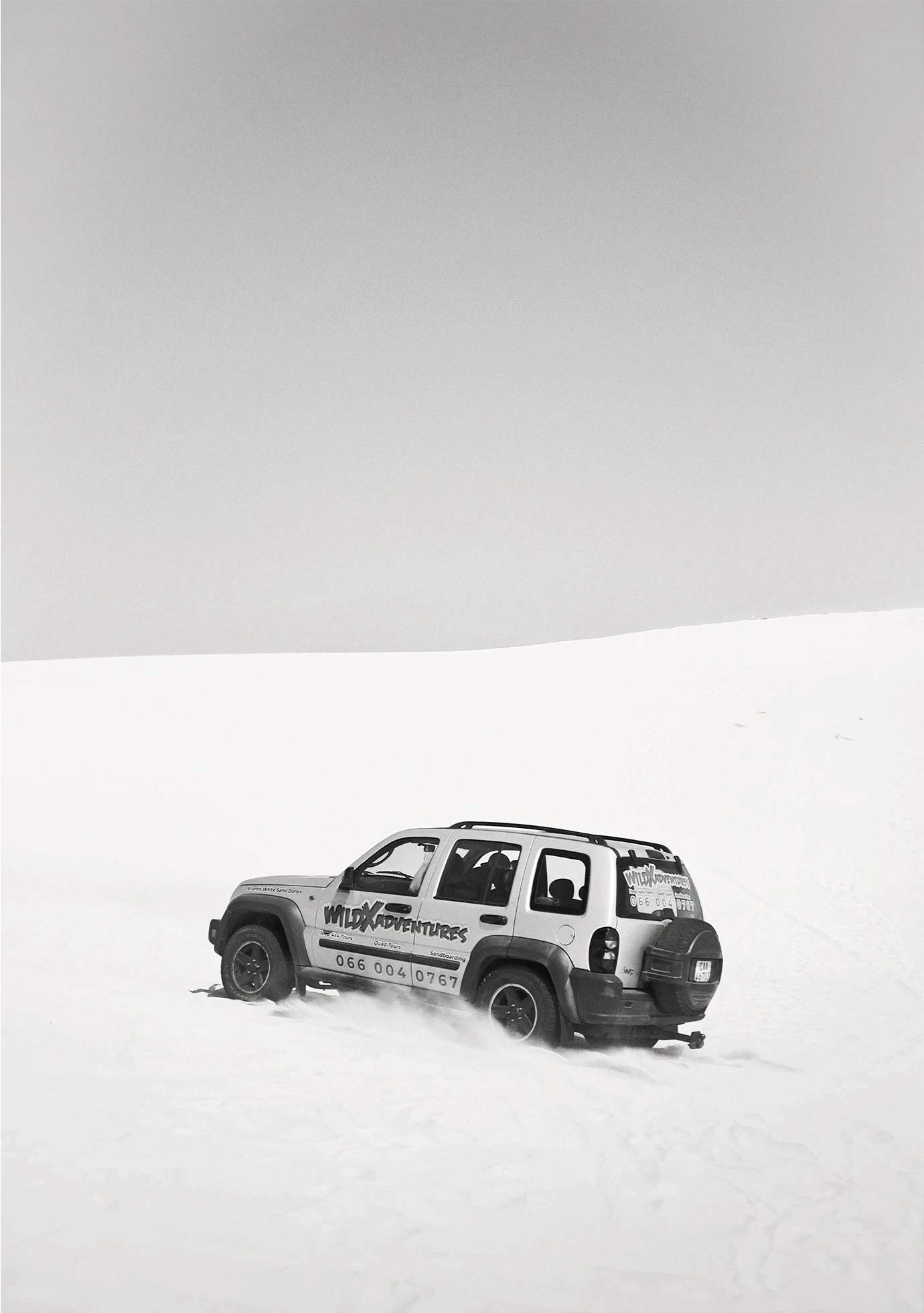 Arrakis, like the dunes we stood on, is an endless sea of sand. I leaned into its vastness, embracing negative space and allowing moving figures on quad bikes or on foot to drift through the expanses, creating a dreamlike stillness. The wind was relentless, shaping the sand into textured patterns that shimmered through the lens, reminiscent of Fraser’s spice storms. Drawing from Geidi Prime, where tonal contrast defines the world, I stripped images to black and white. Without colour, shadow and light began to speak, revealing form, rhythm, and atmosphere.