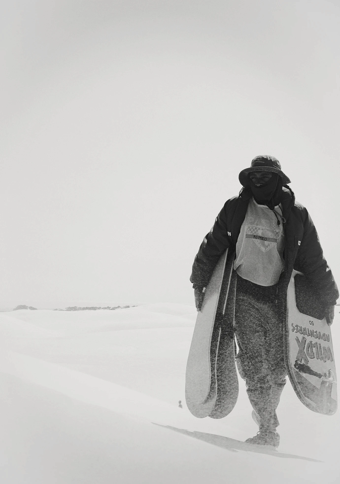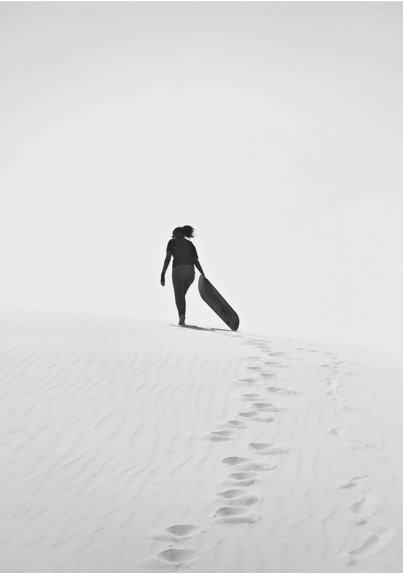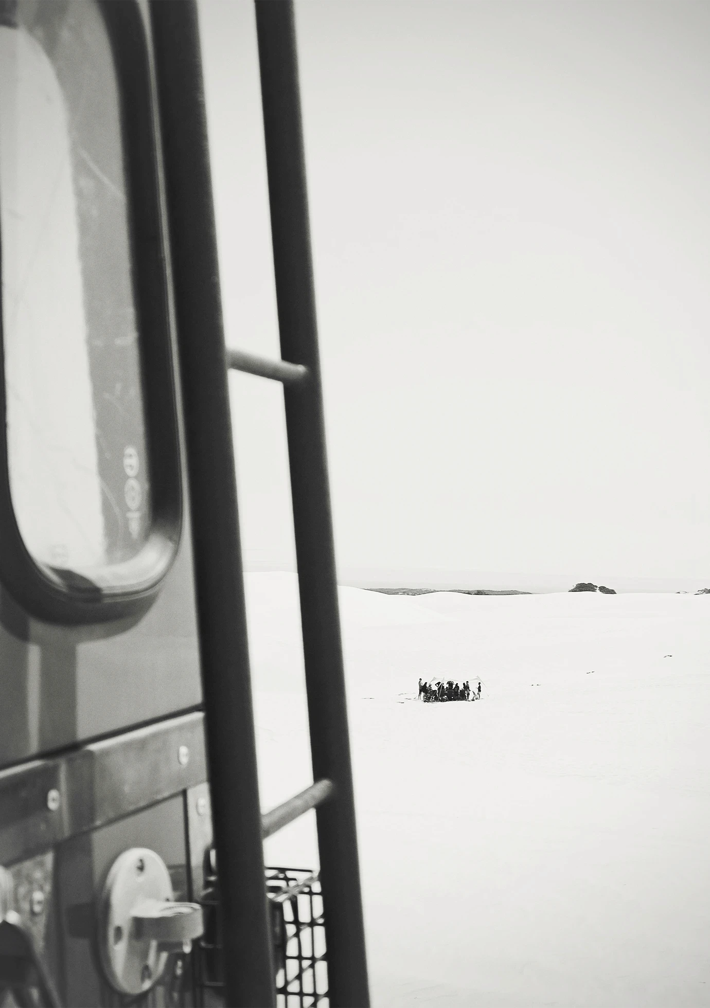 Arrakis, like the dunes we stood on, is an endless sea of sand. I leaned into its vastness, embracing negative space and allowing moving figures on quad bikes or on foot to drift through the expanses, creating a dreamlike stillness. The wind was relentless, shaping the sand into textured patterns that shimmered through the lens, reminiscent of Fraser’s spice storms. Drawing from Geidi Prime, where tonal contrast defines the world, I stripped images to black and white. Without colour, shadow and light began to speak, revealing form, rhythm, and atmosphere.